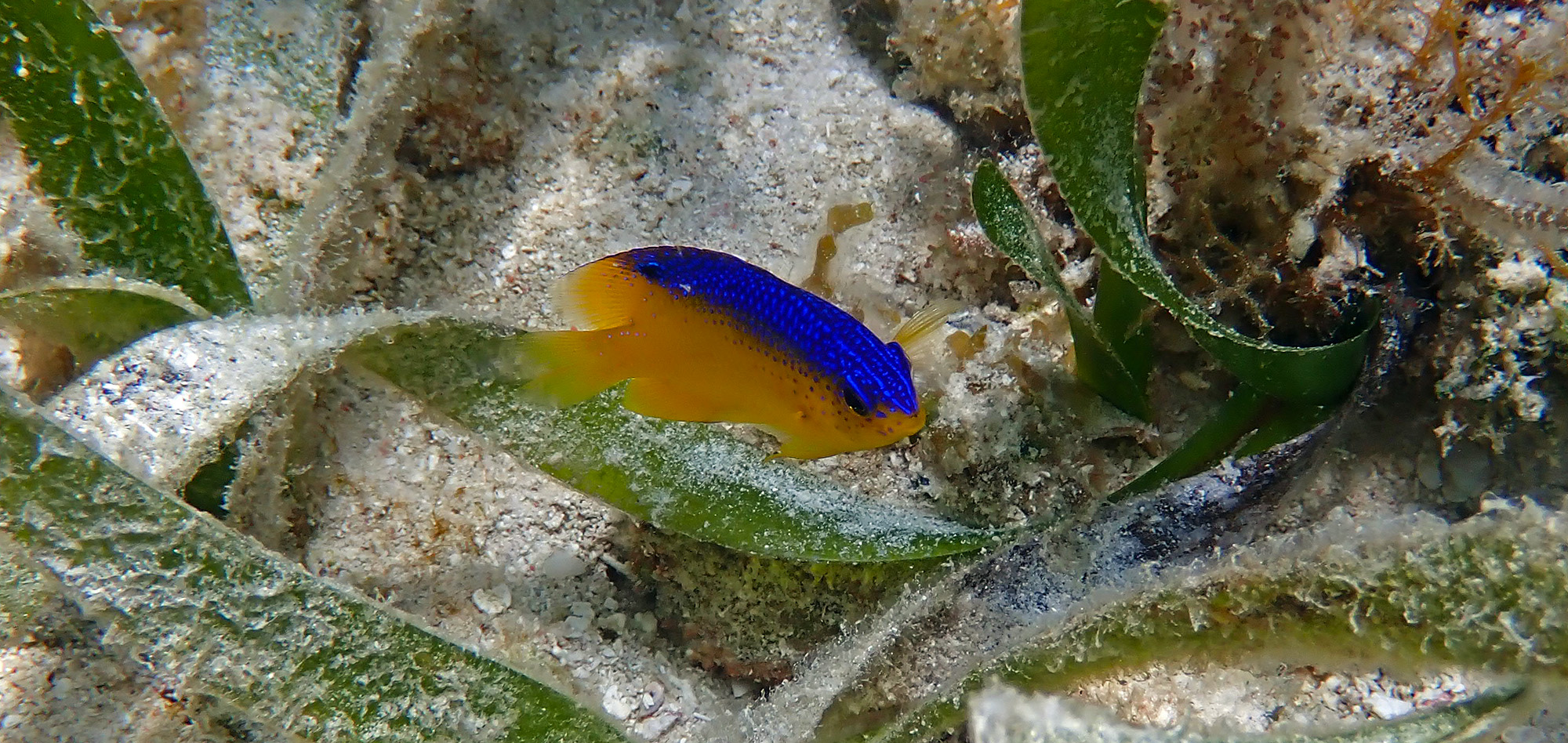 Back at Glover's ReefJuvenile fishes are particularly appealing, wrapped in bright colors and delightfully tiny, like this Cocoa Damselfish