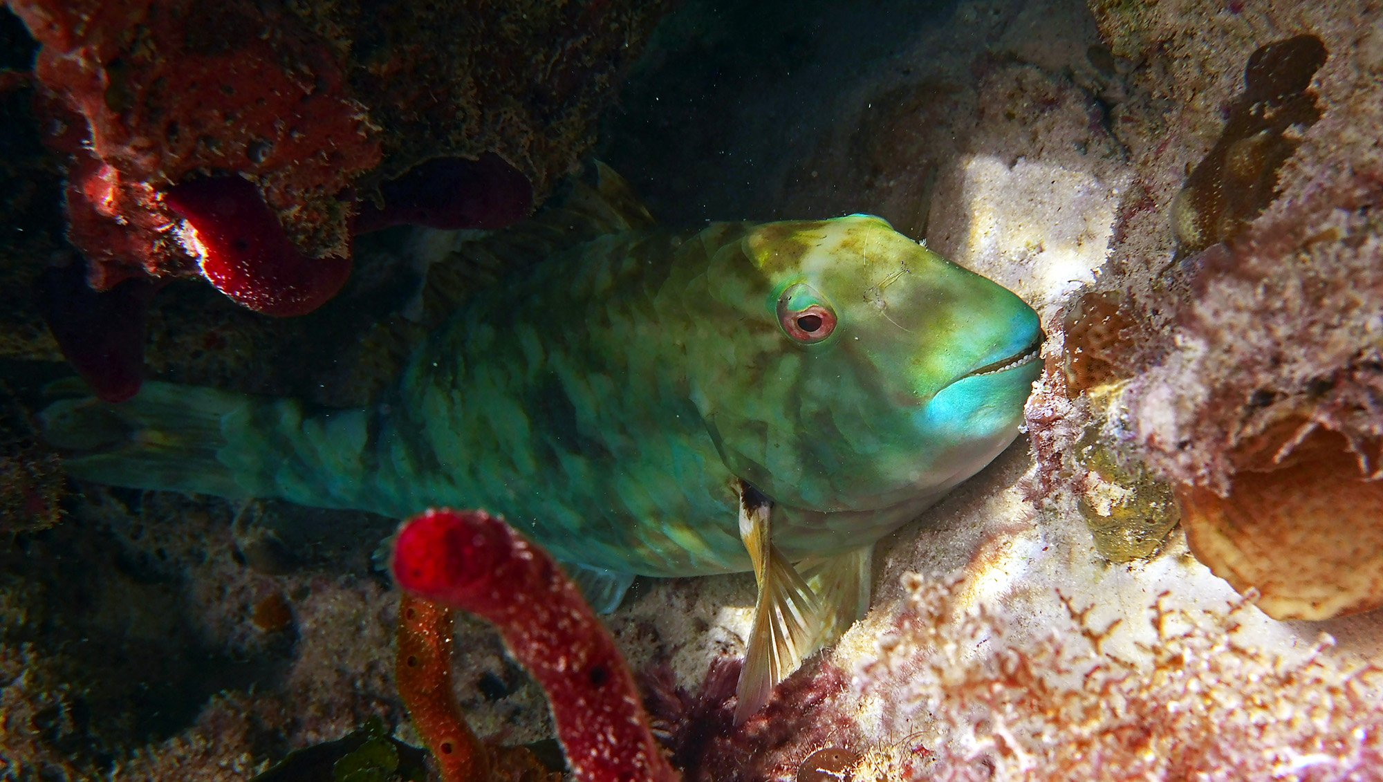 Or a parrotfish, rousing itself from a nap in a secluded cave
