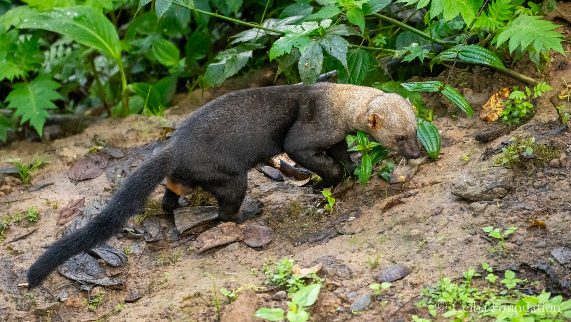 Near a fruit feeder that Bellavista maintains for birds, a surprising visitor: a male Tayra (tropical member of the weasel family) strolled out of the underbrush to see what the birds might have dropped