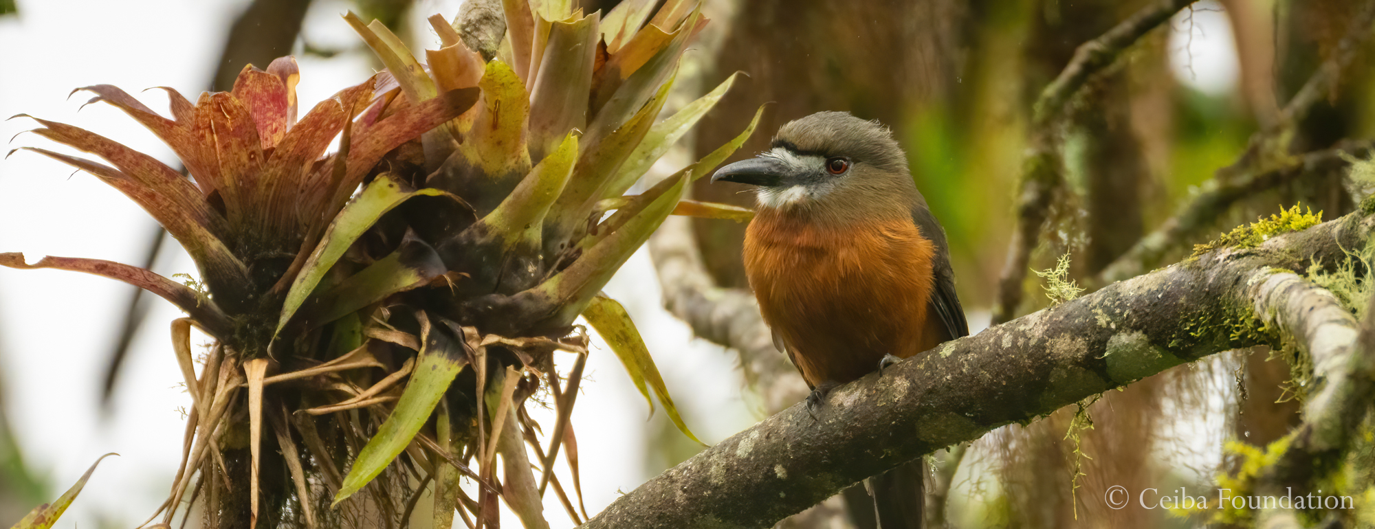 A rare sighting, this White-faced Nunbird perched next to a pair of bromeliads